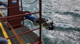 Images below are from 2018 were an echoscope was placed onboard the offshore vessel while the 40Te Scanmachine was located on top of a gravel pad. Feedback from that setup was less standby time and improved control during operation in low visibility.